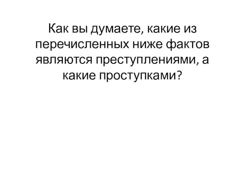 Слайд 19Как вы думаете, какие из перечисленных ниже фактов являются преступлениями, а