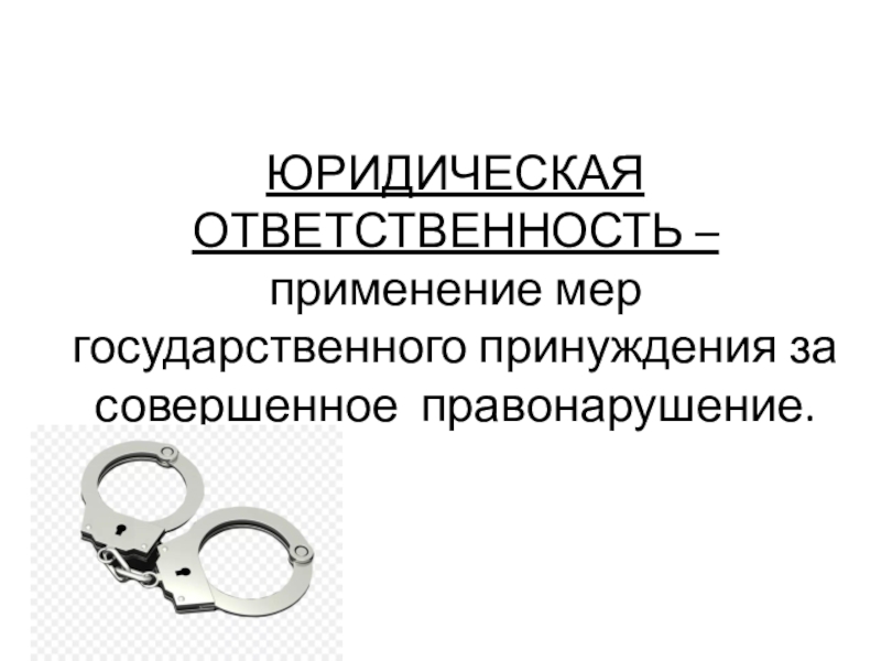 Слайд 25ЮРИДИЧЕСКАЯ ОТВЕТСТВЕННОСТЬ – применение мер государственного принуждения за совершенное правонарушение.