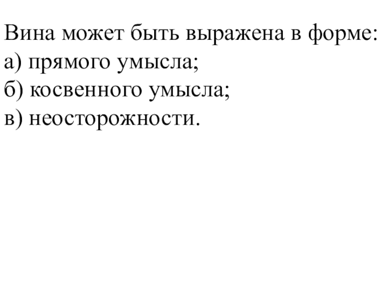 Слайд 17ВИНА – психическое отношение лица к своему деянию и его последствиям.