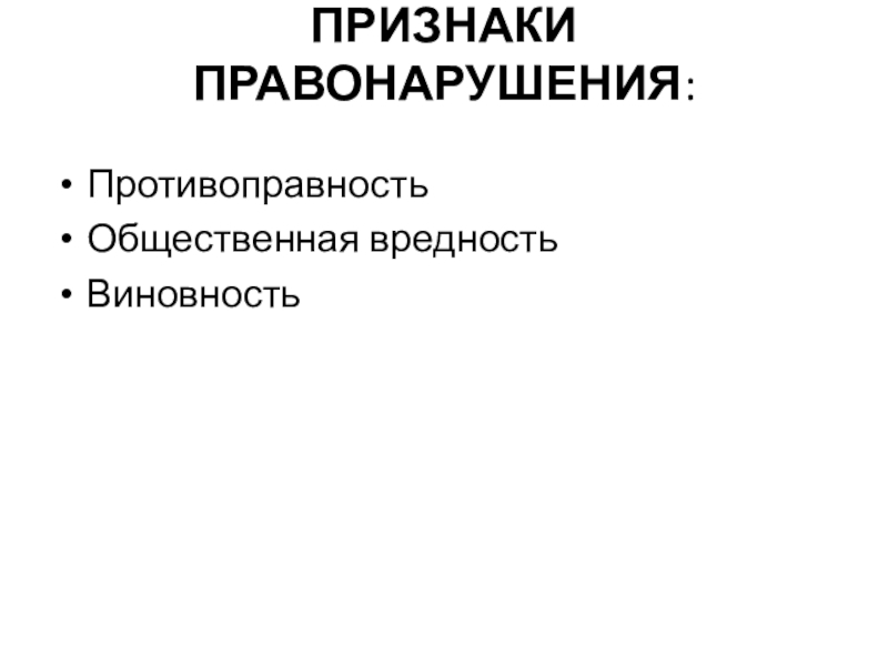 Слайд 12ПРИЗНАКИ ПРАВОНАРУШЕНИЯ: