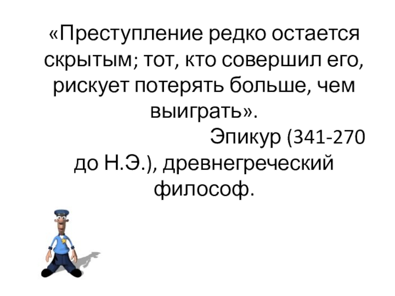 Слайд 32«Преступление редко остается скрытым; тот, кто совершил его, рискует потерять больше,