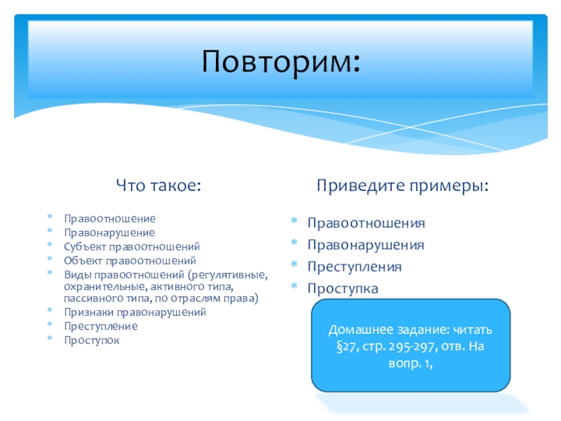Домашнее задание: читать §27, стр. 295-297, отв. На вопр. 1-3