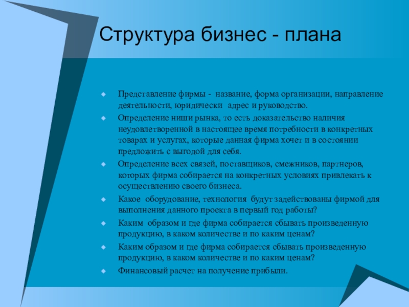 Определение ниши рынка, то есть доказательство наличия неудовлетворенной в настоящее время потребности в конкретных товарах и услугах, которые данная фирма хочет и в состоянии предложить с выгодой для себя.