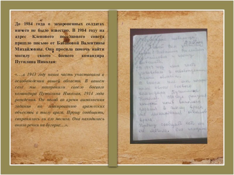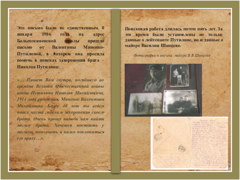 Поисковая работа длилась почти пять лет. За это время были установлены не только данные о лейтенанте Путилине, но и данные о майоре Василии Шанцеве.