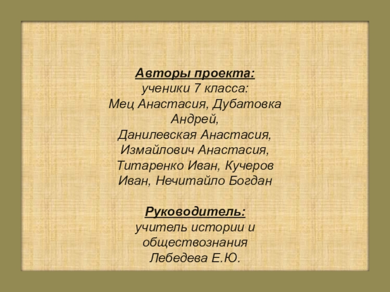 Дмитрий Фанфатович, Дроздов Василий Егорович, Олиференко Анна Васильевна, Сидоренко Ефим Дмитриевич.
