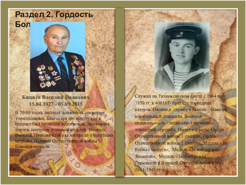 Родился 25 декабря 1910 года в селе Большая Каменка