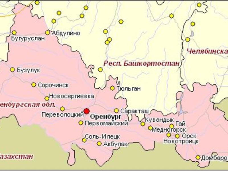 Географическое положение Город расположен на юге Урала, на реке Урал (Яик), близ впадения в неё реки Сакмары. Оренбург находится в 1475 км