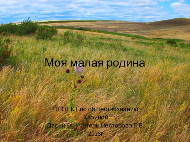 Моя малая родинаПРОЕКТ по обществознаниюХвоиной Дарьи 6г. Учитель Нестерова Г.В.2018г