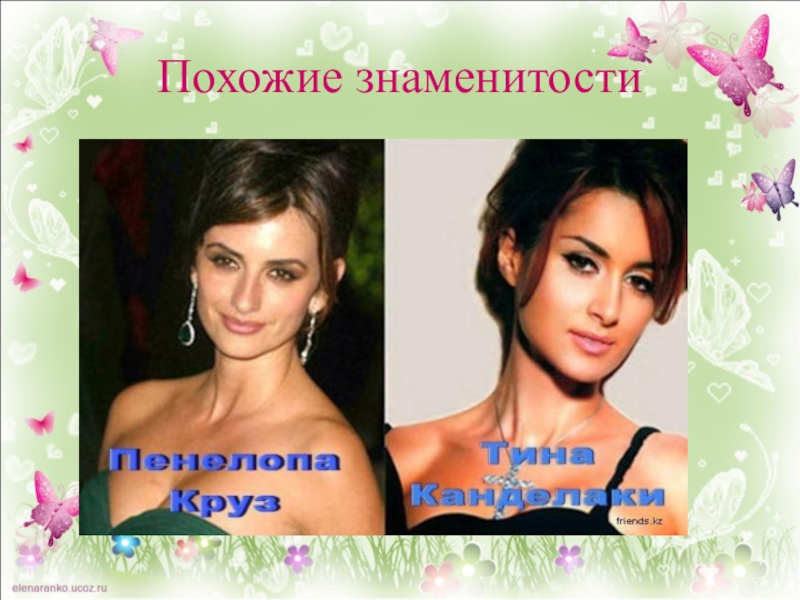 сходство: цвет глаз, волос, кожи, но больше мы похожи по своим качествам: мы энергичные, целеустремлённые, артистичные, эмоциональные.