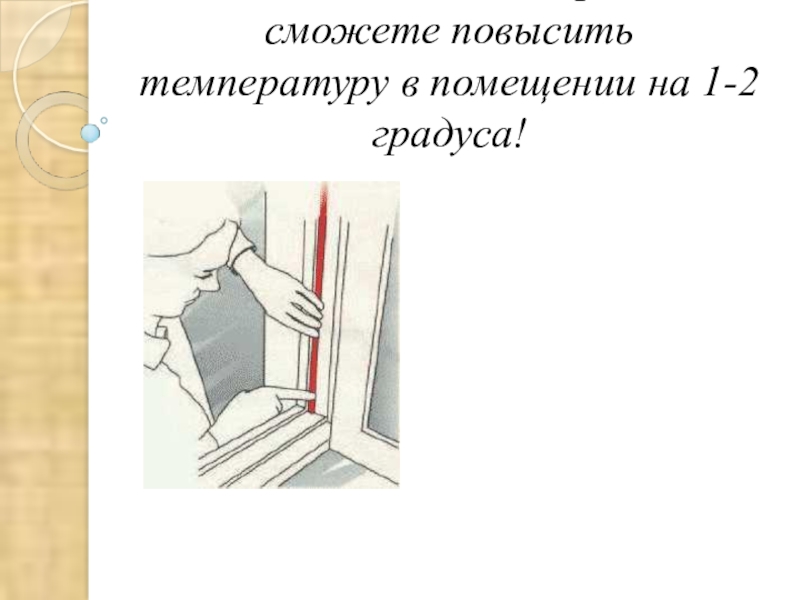 Слайд 12Уплотнив окна и двери, Вы сможете повысить температуру в помещении на