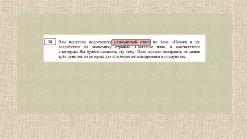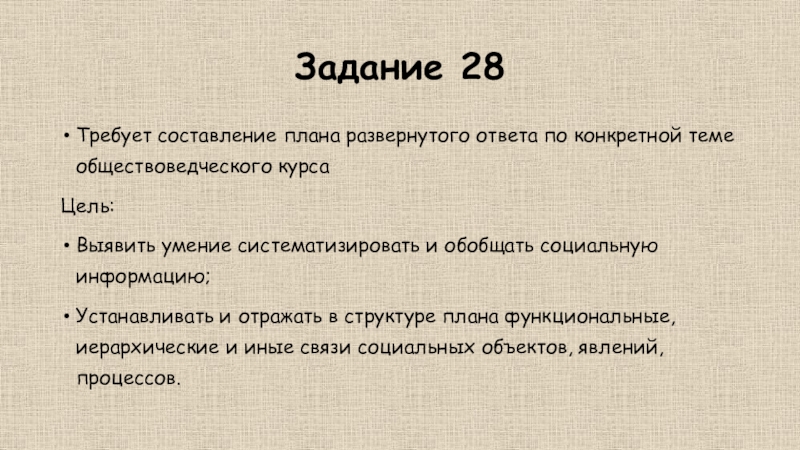 Задание 28Требует составление плана развернутого ответа по конкретной теме обществоведческого курса Цель: Выявить умение систематизировать и обобщать