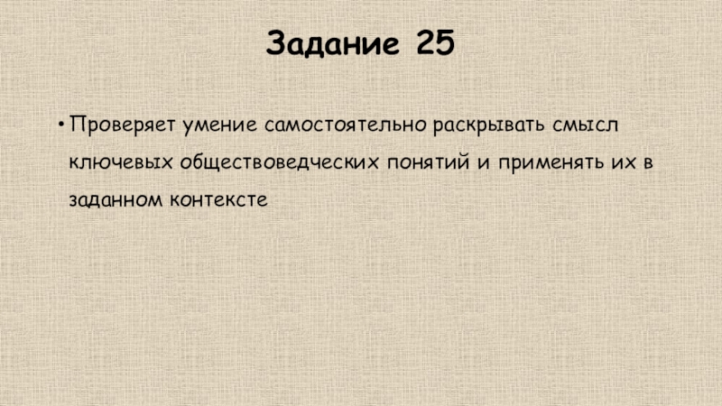 Задание 25 Проверяет умение самостоятельно раскрывать смысл ключевых обществоведческих понятий и применять их в заданном контексте