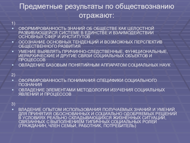Слайд 7Предметные результаты по обществознанию отражают: