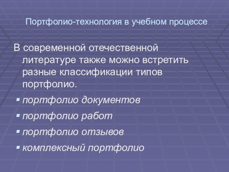 классификации типов портфолио.