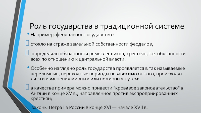 Особенно наглядно роль государства проявляется в так называемые переломные, переходные периоды независимо от того, происходят ли эти изменения мирным или немирным путем: