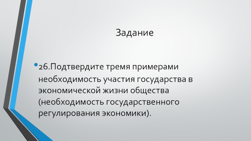 26.Подтвердите тремя примерами необходимость участия государства в экономической жизни общества