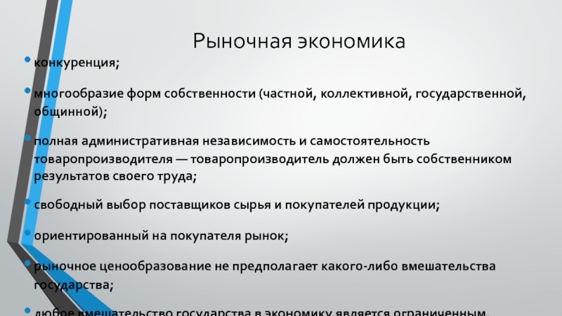 рыночное ценообразование не предполагает какого-либо вмешательства государства;