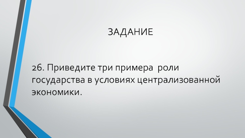 26. Приведите три примера роли государства в условиях централизованной экономики.