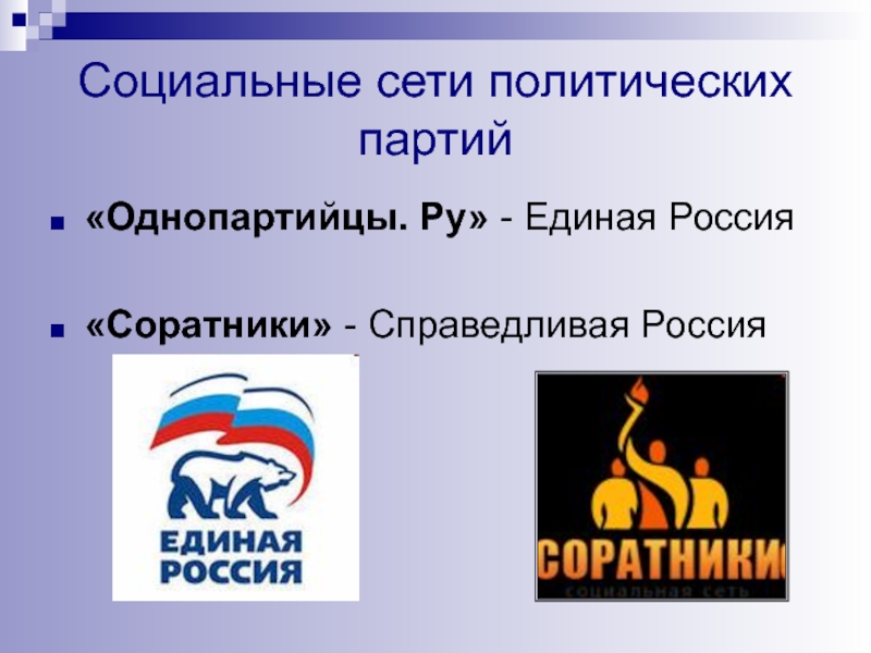 Слайд 28Социальные сети политических партий