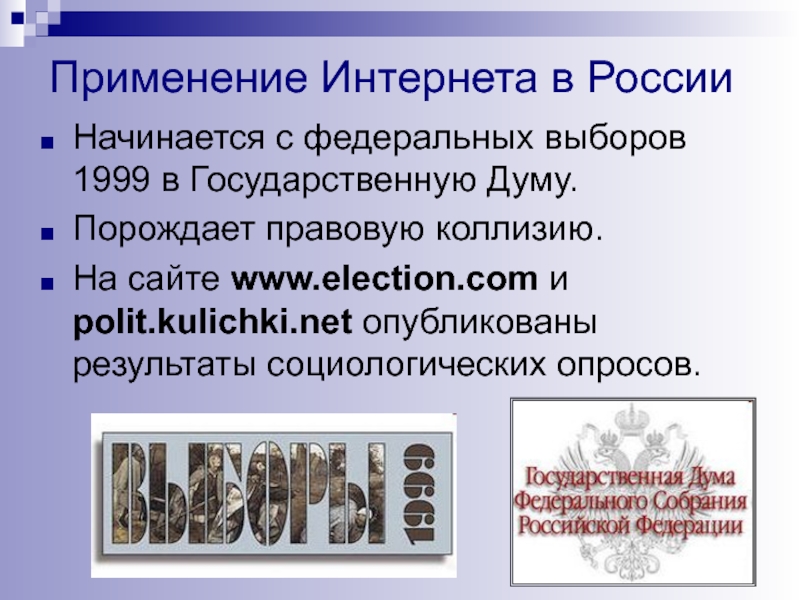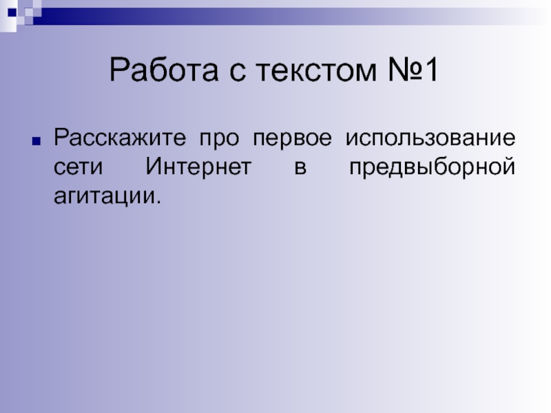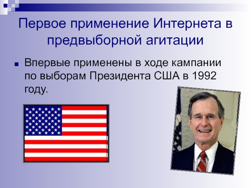 Слайд 30Первое применение Интернета в предвыборной агитации
