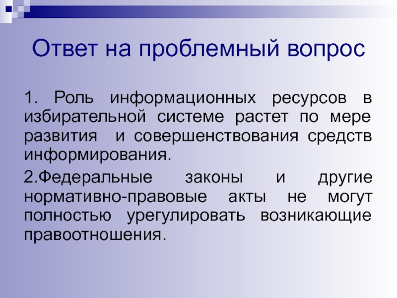 1. Роль информационных ресурсов в избирательной системе растет