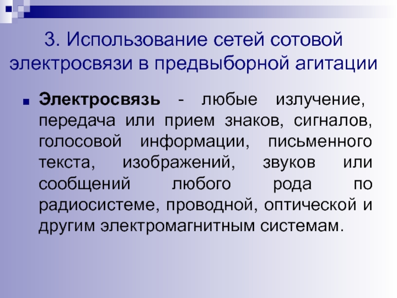 Слайд 353. Использование сетей сотовой электросвязи в предвыборной агитации