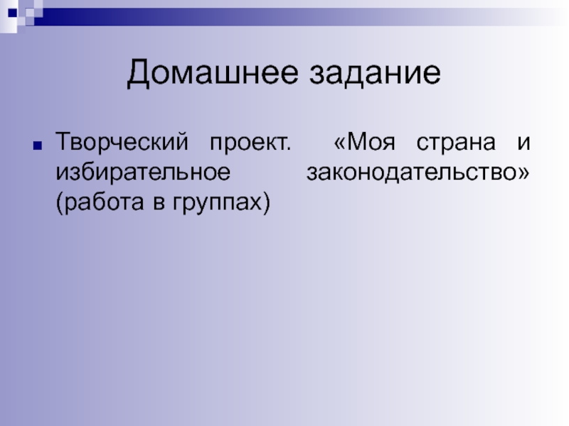 Творческий проект. «Моя страна и избирательное законодательство» (работа в группах)