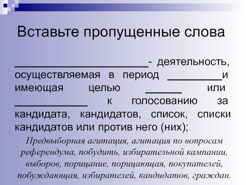 Предвыборная агитация, агитация по вопросам референдума, побудить, избирательной кампании, выборов, порицание, порицающая, покупателей, побуждающая, избирателей, кандидатов, граждан.