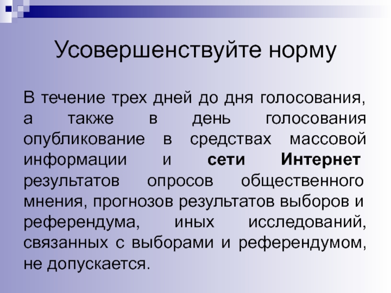 день голосования опубликование в средствах массовой информации и сети Интернет результатов опросов общественного мнения, прогнозов результатов выборов и референдума, иных исследований, связанных с выборами и референдумом, не допускается.