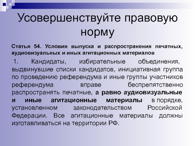 Слайд 40Усовершенствуйте правовую норму