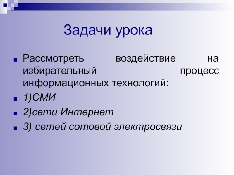 Рассмотреть воздействие на избирательный процесс информационных технологий: