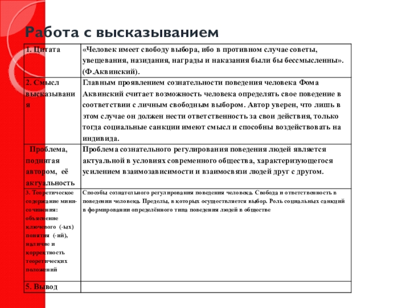 2) соответствие содержания мини – сочинения заявленной проблеме;