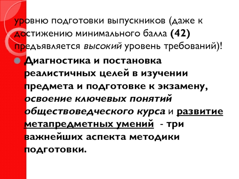 Слайд 4уровню подготовки выпускников (даже к достижению минимального балла (42) предъявляется
