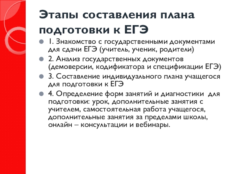 Слайд 5Этапы составления плана подготовки к ЕГЭ