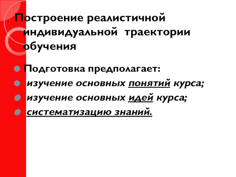 Слайд 8Построение реалистичной индивидуальной траектории обучения