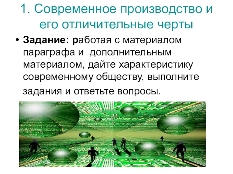 1. Современное производство и его отличительные чертыЗадание: работая с материалом параграфа и дополнительным материалом, дайте характеристику современному