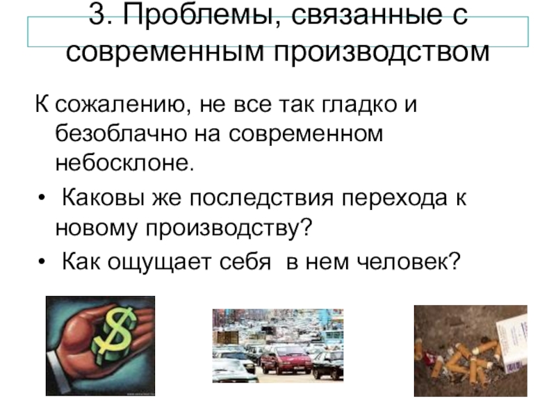 3. Проблемы, связанные с современным производствомК сожалению, не все так гладко и безоблачно на современном небосклоне. Каковы