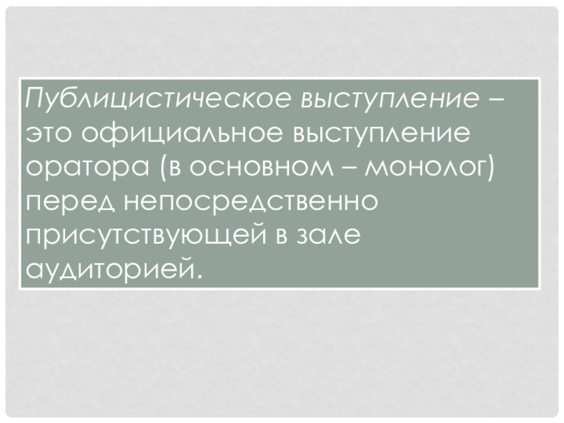 Слайд 5Публицистическое выступление – это официальное выступление оратора (в основном – монолог)