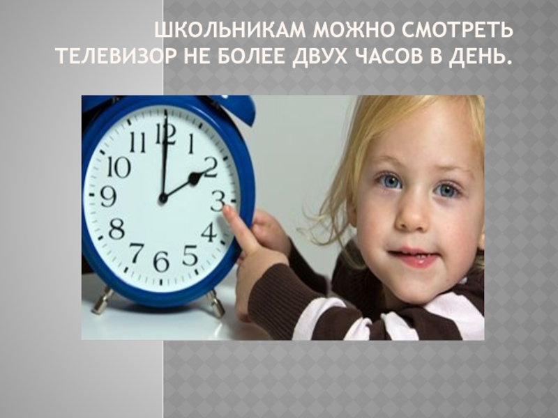 Слайд 14Школьникам можно смотреть телевизор не более двух часов в день.
