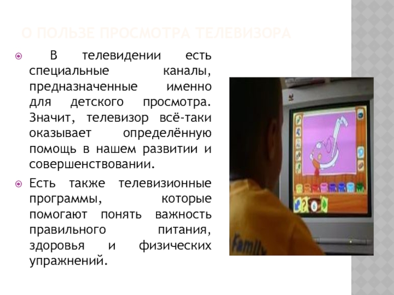 для детского просмотра. Значит, телевизор всё-таки оказывает определённую помощь в нашем развитии и совершенствовании.