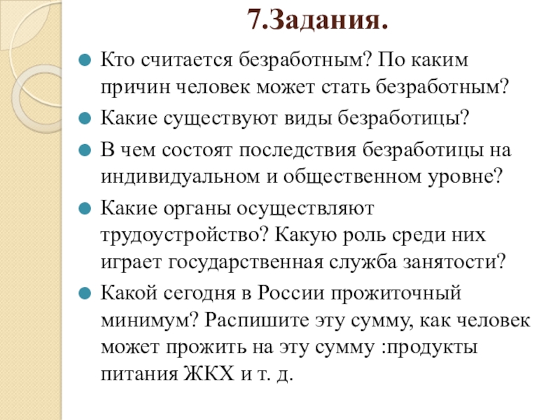 Экономические последствия безработицы на индивидуальном уровне заключаются в потере