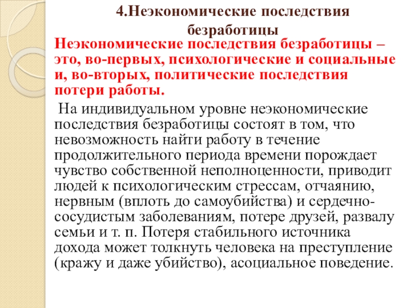 Неэкономические последствия безработицы – это, во-первых, психологические и социальные