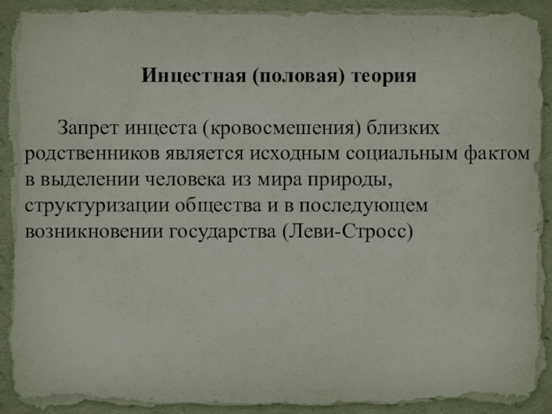 является исходным социальным фактом в выделении человека из мира природы, структуризации общества и в последующем возникновении государства (Леви-Стросс)