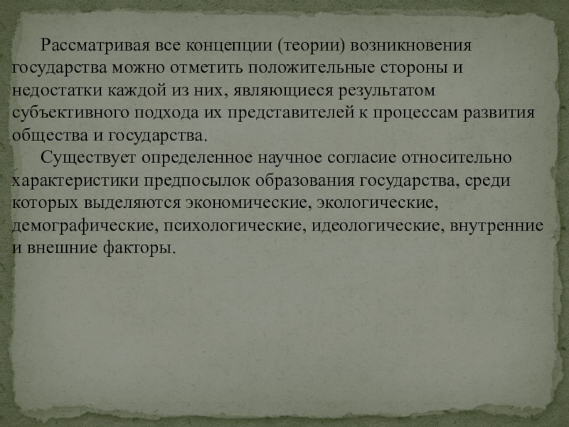 Слайд 16 Рассматривая все концепции (теории) возникновения государства можно отметить положительные стороны и