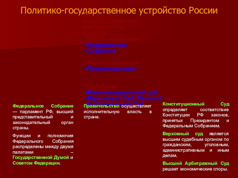 Федеральное Собрание — парламент РФ, высший представительный и законодательный орган страны.