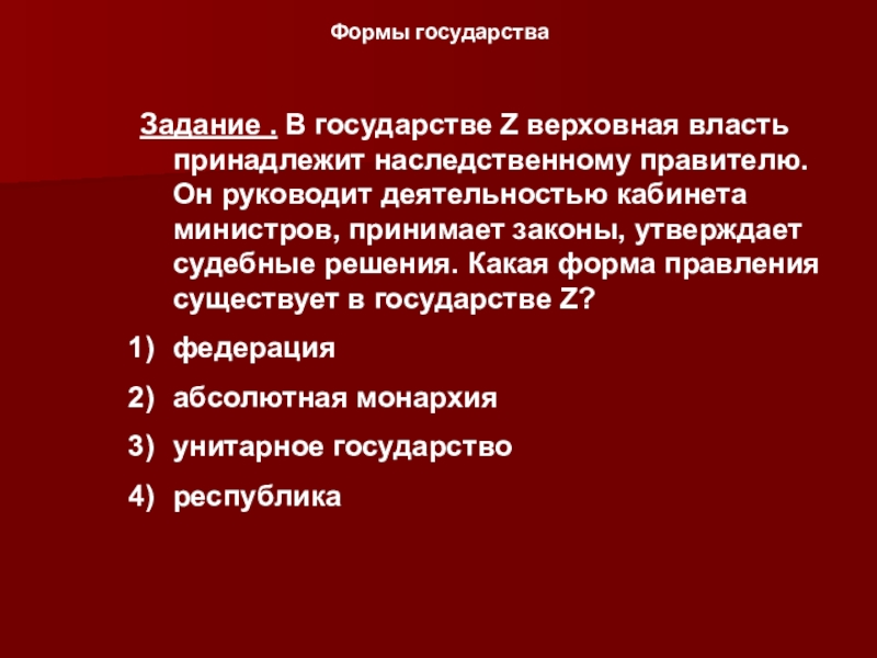 Государство – организация политической власти, осуществляющая управление обществом, охрану его экономической и социальной структуры.