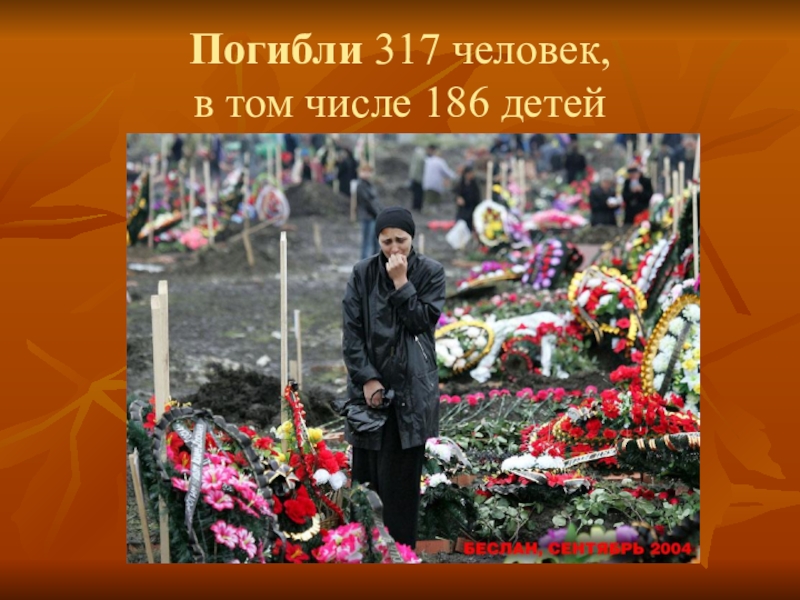 Слайд 7Погибли 317 человек, в том числе 186 детей