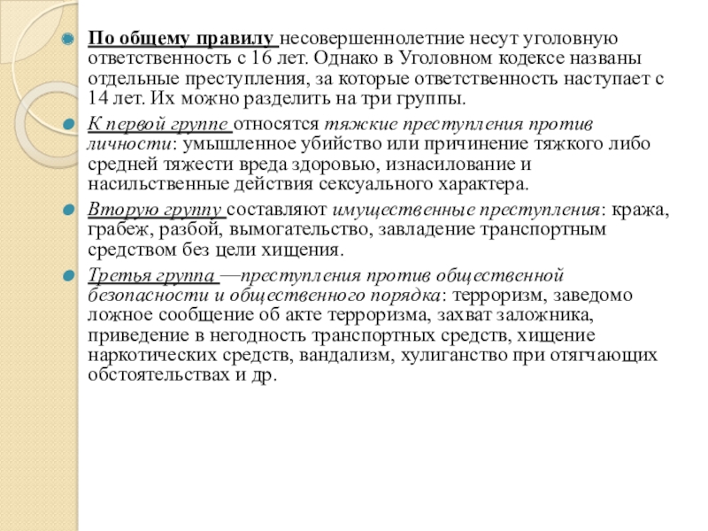 Слайд 15По общему правилу несовершеннолетние несут уголовную ответственность с 16 лет. Однако