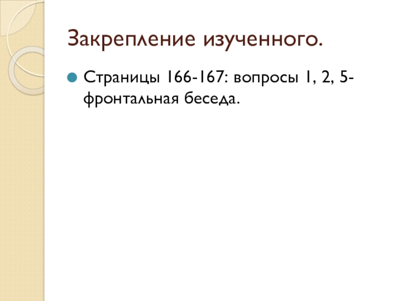 Страницы 166-167: вопросы 1, 2, 5- фронтальная беседа.