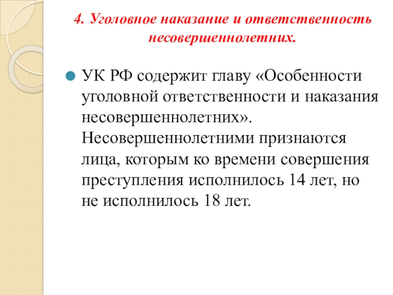 ответственности и наказания несовершеннолетних». Несовершеннолетними признаются лица, которым ко времени совершения преступления исполнилось 14 лет, но не исполнилось 18 лет.